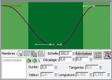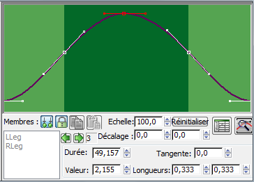 ModElévPlante est disponible pour tous les membres, mais s'applique plutôt aux jambes. Ce graphique détermine le rapport entre-temps durant lequel les pieds sont sur le sol le temps pendant lequel ils sont en l'air. La seule valeur modifiable dans cette fenêtre est la glissière située sous le graphique.