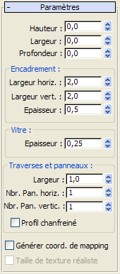 Chanfreine les traverses entre les groupes de fonctions vitrés, à l'image d'une fenêtre en bois standard. Lorsque cette option est désactivée, les traverses possèdent une ligne de profil en long rectangulaire.