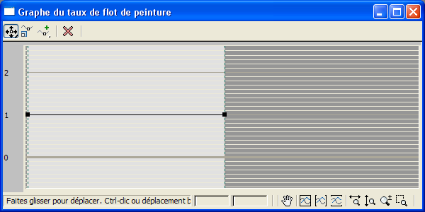 Le graphique Peindre graphique vitesse flux apparaît lorsque vous cliquez sur le bouton Taux dans le panneau déroulant Configuration d'un Assistant peinture particule. Il vous permet d'animer le taux de peinture des particules sur la durée d'un seul trait.