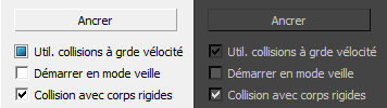 - Si le paramètre est une case à cocher (par exemple, Utiliser les collisions à grande vélocité), la case à cocher change de couleur ou est sélectionnée ou grisée (et n'est pas vide ou sélectionnée), selon que l'option Schéma est définie sur Utiliser le thème Windows, comme le montre l'illustration suivante.