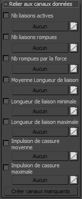 - Un canal de données réelles définit l'espacement de liaison pour une particule. Les données d'un canal de données sont prises en compte uniquement si l'option Espacement de liaison est activée (dans le panneau déroulant mParticles Colle