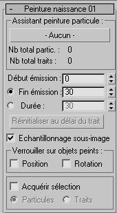 Conseil : Lorsque l'assistant Peinture particule ne génère pas suffisamment de particules et que vous souhaitez utiliser les modèle et taux globaux de naissance de particules définis par ce dernier, utilisez le