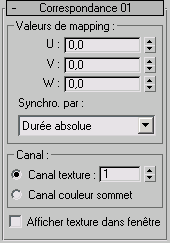 Le paramètre Canal détermine si le mapping est appliqué à un canal texture ou à un canal couleur sommet.