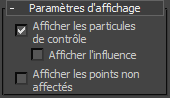 - Indique l'influence des particules de contrôle sélectionnées sous la forme de "gouttes". Cette option est uniquement disponible lorsque l'option Afficher les particules de contrôle (voir ci-dessus) est activée.