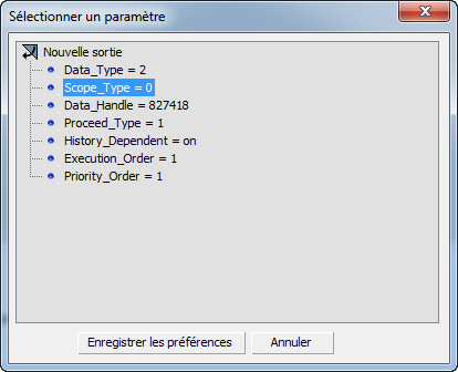 N'oubliez pas que le libellé des paramètres répertoriés peut différer de l'interface du sous-opérateur du fait que le sous-opérateur peut avoir un système complexe de masquage et d'activation de différentes configurations d'interface utilisateur, selon les paramètres sélectionnés. La boîte de dialogue Paramètres répertorie tous les paramètres qui peuvent être remplacés. Pour vous assurer que vous remplacez le bon paramètre, modifiez la valeur du paramètre dans l'interface du sous-opérateur et vérifiez que la valeur change aussi dans la boîte de dialogue Sélectionner un paramètre.