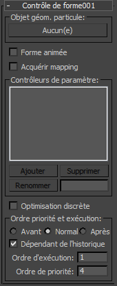 - Contrôle de forme est sous-opérateur de sortie ; il possède par conséquent une zone de paramètres Ordre de priorité et d'exécution. Pour plus de détails, reportez-vous à la rubrique Ordre de priorité et d'exécution.