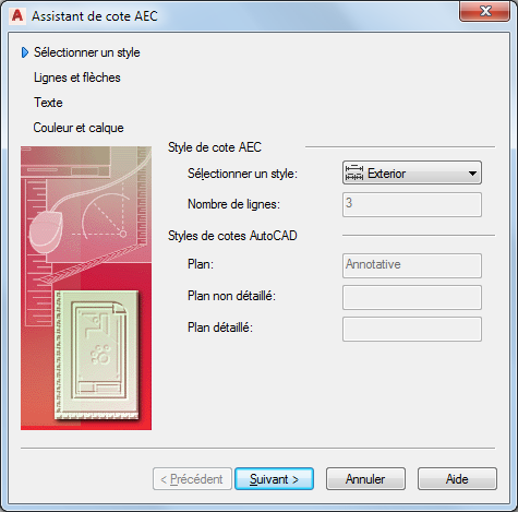 Sélectionnez le style de cote AEC à modifier et cliquez sur Suivant.