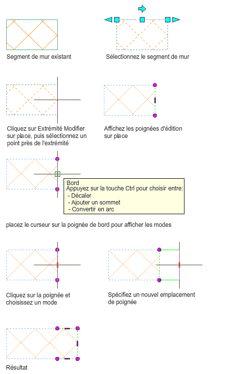 Cette procédure permet de décaler un bord de composant de mur à l'aide de poignées de bord.