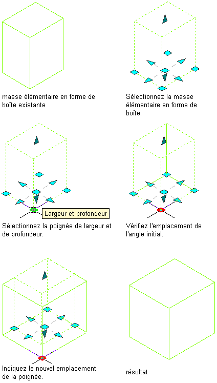 Modification d'une masse élémentaire en forme de boîte à l'aide de sa poignée d'angle
