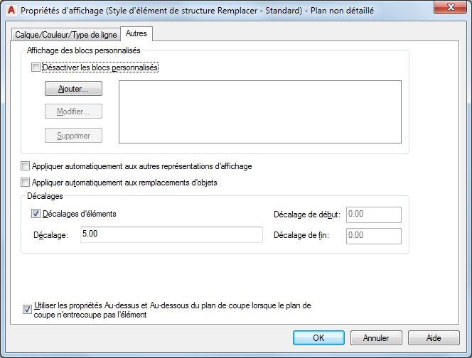 Affichage d'un élément de structure avec les représentations d'affichage Plan détaillé, Plan non détaillé et Plan