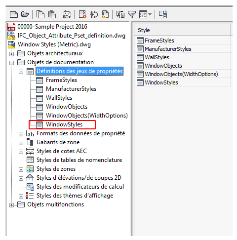 - Développez Table de nomenclature et style et sélectionnez Nomenclature de fenêtre.