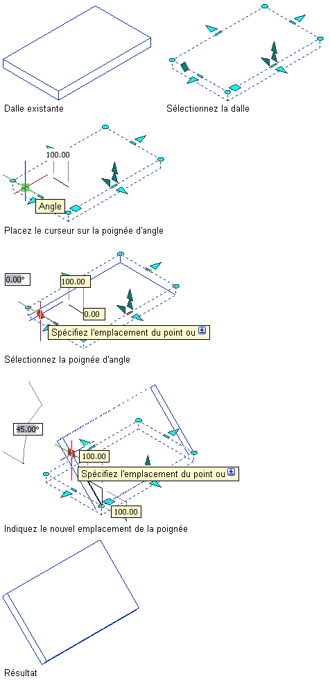Utilisation de la poignée d'angle pour modifier la pente de la dalle