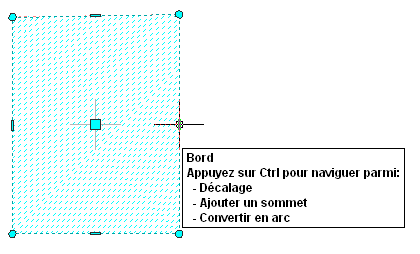 La poignée de bord dispose de trois modes d'édition : Décalage, Ajouter un sommet et Convertir en arc. Le mode par défaut (Décalage) a pour effet de décaler le bord sélectionné dans le sens perpendiculaire au milieu du bord. Selon la forme de la masse élémentaire et le bord que vous choisissez de modifier, les lignes mitoyennes sont étendues ou ajustées et de nouvelles lignes sont ajoutées, le cas échéant.