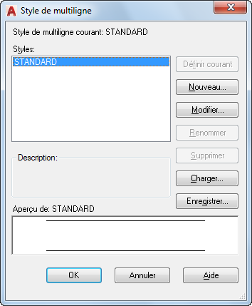 Si vous créez plusieurs styles de multilignes, enregistrez le style courant avant d'en créer un autre, afin d'éviter de perdre les modifications apportées au premier style.