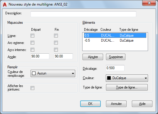 4. Dans la boîte de dialogue Nouveau style de multiligne, sélectionnez les paramètres pour le style de multiligne, puis cliquez sur OK.