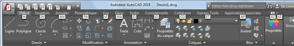 Vous pouvez utiliser des combinaisons de touches au lieu du dispositif de pointage pour effectuer des sélections dans les menus, la barre d'outils d'accès rapide et les rubans. Pour connaître les combinaisons de touches disponibles dans l'espace de travail courant, appuyez sur la touche Alt.