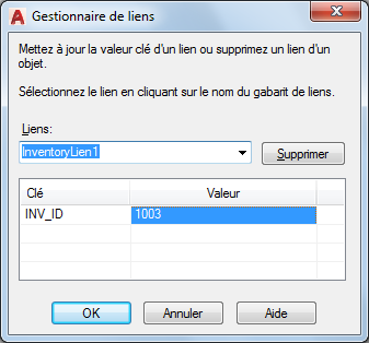 Affiche toutes les valeurs clés définies pour le lien sélectionné. Pour afficher la liste des valeurs correspondant à un champ spécifique, cliquez sur une cellule Valeur et choisissez [...].