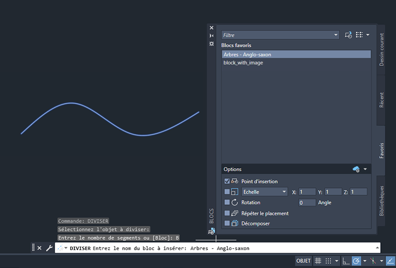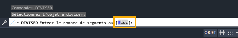 | DIVISER | Crée des points ou des blocs de manière régulière sur la longueur ou le périmètre d’un objet. |