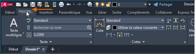 Dans cet exercice, vous allez repositionner l'onglet Annoter et le groupe de fonctions Cotes.