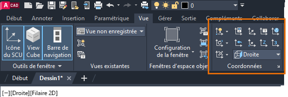 Dans cet exercice, vous allez masquer l'onglet de ruban Paramétrique et afficher le groupe de fonctions Coordonnées dans l'onglet Vue.