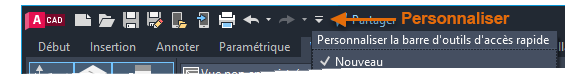 Dans cet exercice, vous allez ajouter l'outil Tracé par lot et la liste déroulante Calques à la barre d'outils d'accès rapide, tout en supprimant l'outil Tracé.