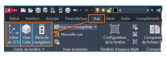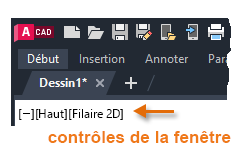 Les commandes de fenêtre sont surtout utilisées pour la modélisation 3D. Si vous ne les utilisez pas, vous pouvez masquer ces commandes pour réduire l'encombrement visuel dans les dessins 2D.