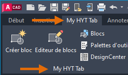 Les nouveaux onglets du ruban ne sont pas automatiquement ajoutés à un espace de travail. Les étapes suivantes expliquent comment ajouter Mon onglet HYT à l’espace de travail actif.