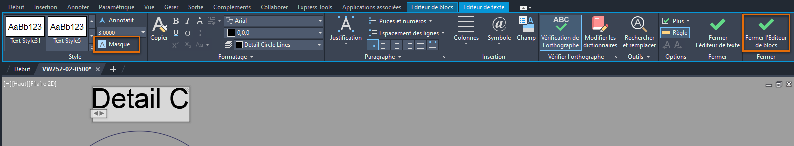 Le repère Detail C est un bloc qui contient le texte multiligne pour lequel vous souhaitez ajouter un masque d'arrière-plan.