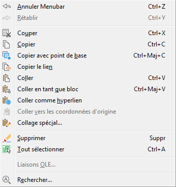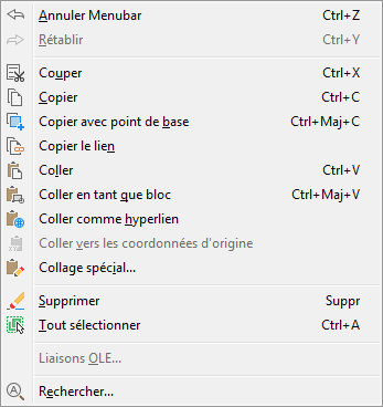 L'exemple suivant montre l'élément de menu Liaisons OLE dans le menu Edition marqué d'une coche et l'image de l'élément de menu Copier le lien est mise en surbrillance avec une bordure.