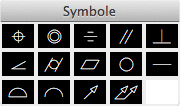 Le symbole est inséré dans la zone de texte Sym de la boîte de dialogue Tolérance géométrique. Le tableau suivant décrit les symboles.