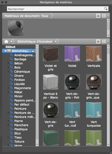 Le navigateur de matériaux permet de parcourir et gérer vos matériaux.