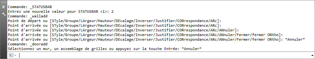Vous pouvez directement saisir des commandes grâce la fenêtre de ligne de commande située au-dessus de la barre d'état.
