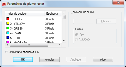 Lorsque vous fusionnez des vecteurs, vous pouvez choisir des épaisseurs de plumes raster dans la boîte de dialogue Paramètres de plume raster.