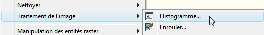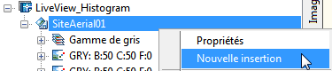 | 6 | Si vous souhaitez utiliser d'autres options de l'histogramme pour modifier l'image, réalisez des copies supplémentaires de l'image. Pour ce faire, vérifiez que le Gestionnaire des images est ouvert (si nécessaire, cliquez sur le menu Raster Gérer). Dans la vue Données d'images, cliquez à l'aide du bouton droit de la souris sur le nom de l'image et choisissez Nouvelle insertion.