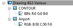 Comme l'illustre la figure suivante, l'arborescence affiche deux types d'objets :