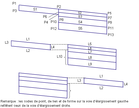 Décalage du point d'insertion à gauche. Il s'agit du point où commence la voie d'élargissement sur la gauche et est situé par défaut sur le bord gauche existant. |
