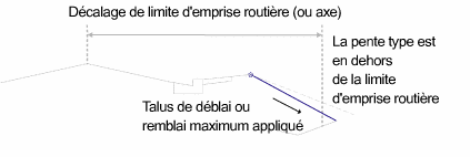 Si la pente type n'entre pas dans les limites de l'emprise routière, alors une pente plus abrupte est utilisée. Si cette dernière n'est toujours pas dans les limites de l'emprise routière, l'utilisateur dispose d'options pour contrôler le comportement.