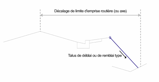 | L1 | Emprise, Assise des terrassements, Entrée en terre, Entrée en terre_Remblai, Pente du lien | Lien d'entrée en terre pour des lignes de profil en travers en remblai |