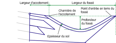 | Largeur du fossé | Précise la largeur du fossé depuis le point de charnière de l'accotement. | Numérique, positive |