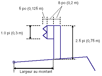 Lorsque la rambarde est incluse, la largeur entre le point d'association et le bord intérieur du montant de la rambarde. |