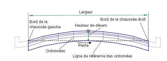 % pente de la ligne de référence des ordonnées entre le bord de chaussée gauche et le bord de chaussée droite |