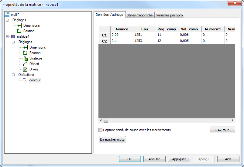 Reg. comp. associe chaque Val. comp. avec une passe particulière et apparaît en H11, H12 et ainsi de suite dans le code CN.