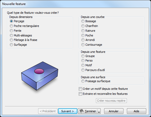 - Cliquer sur Terminer pour créer la feature et quitter l'assistant ou cliquer sur Précédent pour revenir aux pages précédentes.