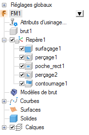Double-cliquez sur l'icône pour afficher la boite de dialogue Attributs d'usinage où vous pouvez spécifier les attributs d'usinage par défaut. |