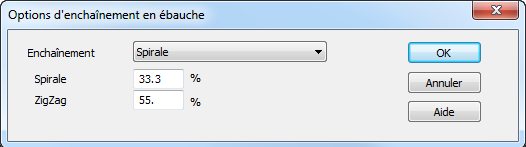Cliquez sur le bouton Options d'enchaînement dans l'onglet Enchaînement pour ouvrir la boite de dialogue Options d'enchaînement en ébauche :