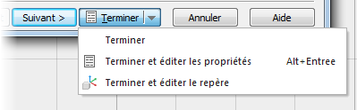 Terminer et éditer le repère : acceptez les réglages par défaut dans les pages restantes, fermez l'assistant et affichez la boîte de dialogue Propriétés du repère, qui vous permet de modifier le repère actif.