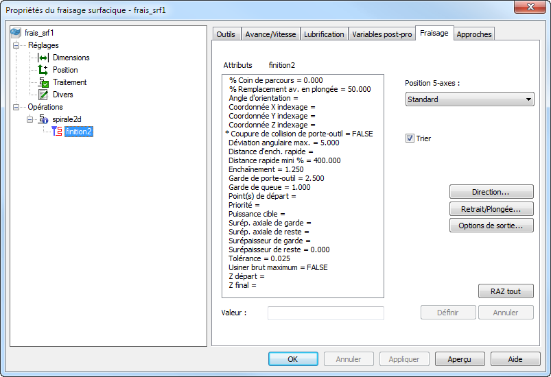 Direction — Cliquez sur ce bouton pour ouvrir la boite de dialogue Direction d'usinage.
