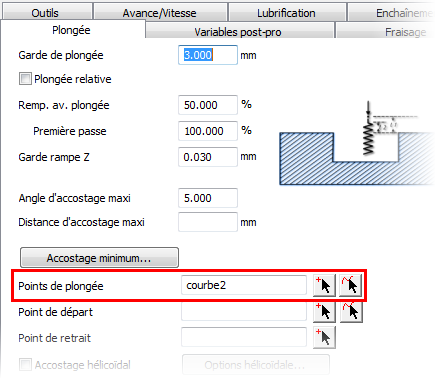Vous pouvez utiliser une courbe pour spécifier plusieurs points de plongée ou points de départ pour une opération.