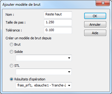 Cette pièce d'exemple utilise un modèle de brut pour éviter la découpe dans le vide.