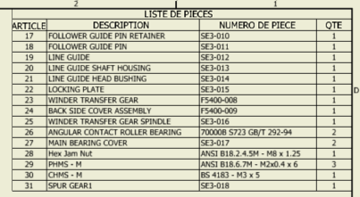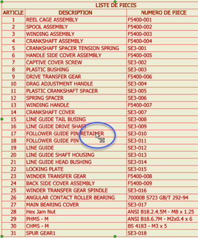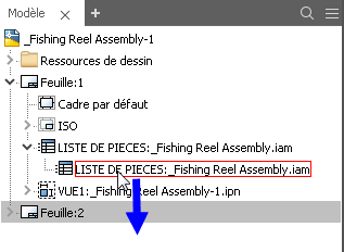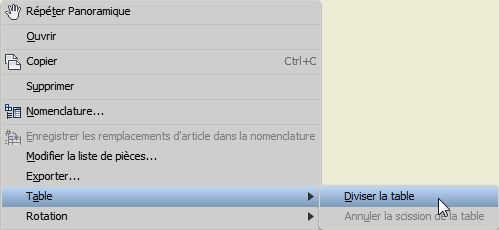 Vous pouvez scinder une liste de pièces, un perçage, une révision ou une table générale, puis déplacer la coupe scindée vers un nouvel emplacement ou une nouvelle feuille.